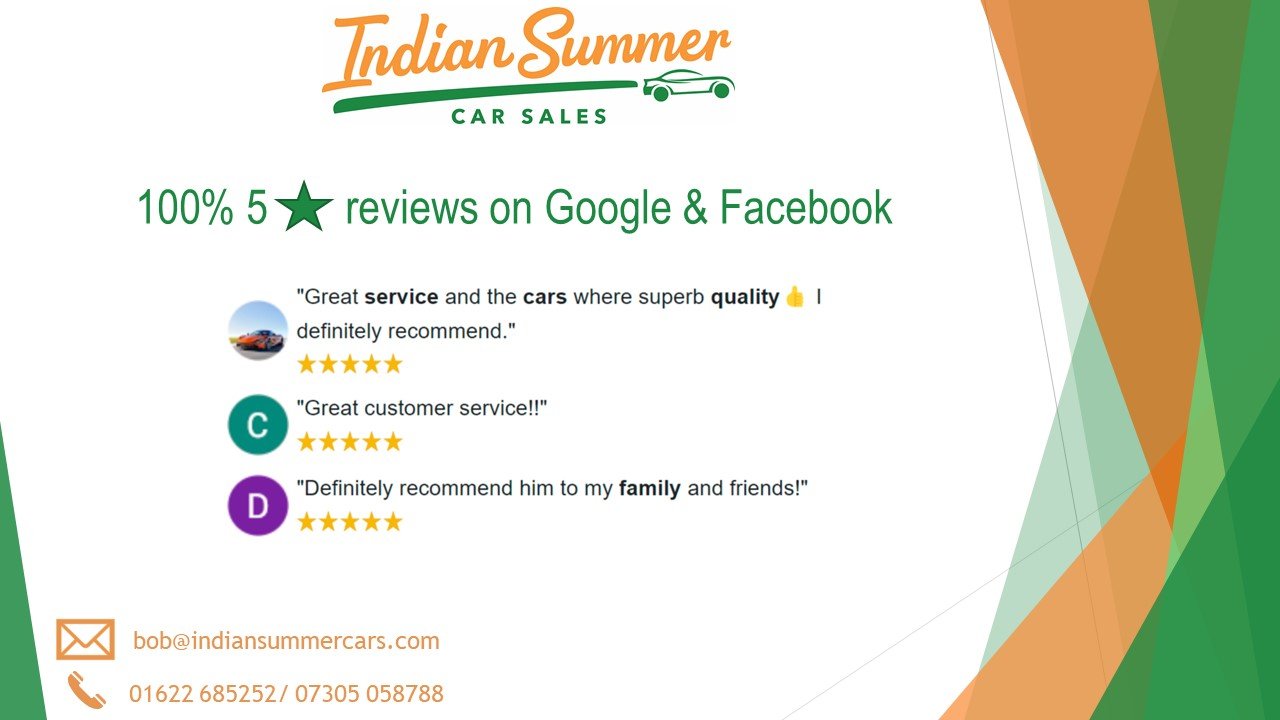 We are a quality used car dealership regulated by the Financial Conduct Authority (FCA). Based in the heart of Kent, we have good transport links via the M2 & M20 Motorways and walking distance from mainline train stations. We pride ourselves on the quality of service offered to our customers - Search for 'Indian Summer Car Sales' on Google to see what our customers have been saying about us! Should you have any questions or wish to book a test drive, feel free to contact us on 01622 685 252 or 07305 058 788 - Our lines are open 7 days a week between 7am-7pm. Viewing by appointment only.